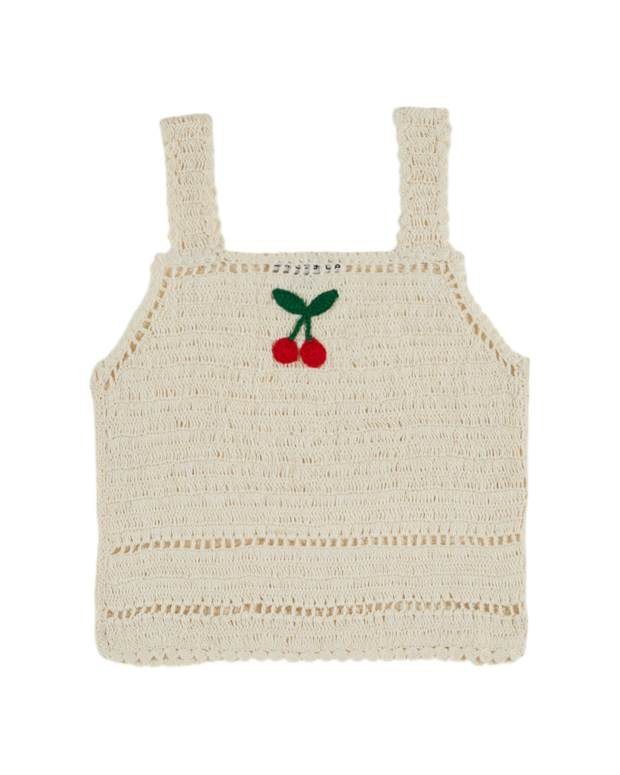 TOP CROCHET CERISE CREME