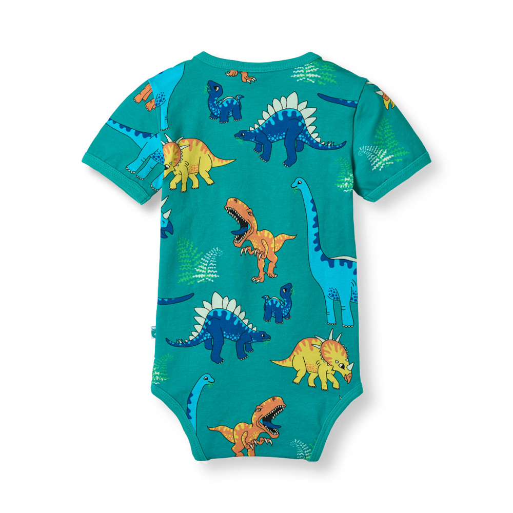 Short-sleeved bodysuit with dinosaurs Teal