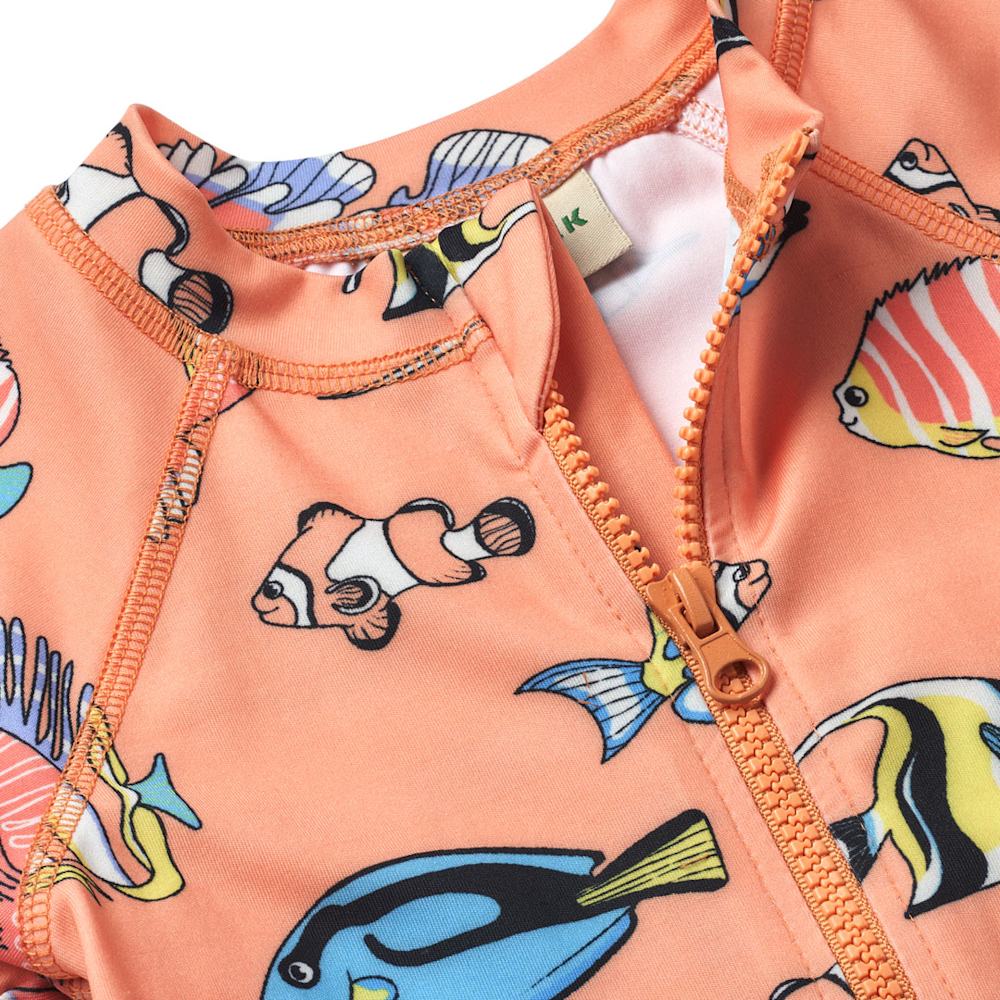 UV50 swimsuit with fish Papaya