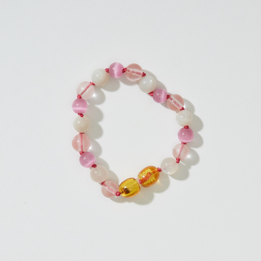 천연 호박, 로즈쿼츠, 아마존석 등 자연에서 온 원석을 사용하여 아이의 감성을 자극하고, 어른에게는 차분한 힐링을 전합니다.