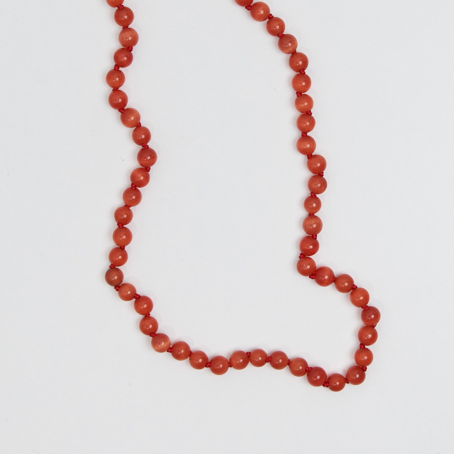 Beads of beautiful Red Cats Eye, Red Cord and Safety Clasp