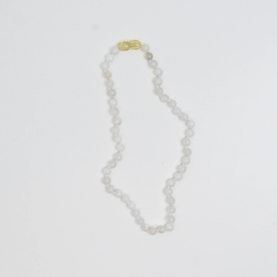Raw Lemon Amber + Beads of beautiful Moonstone, Cherry Quartz, Rock Crystal and Aquamarine.