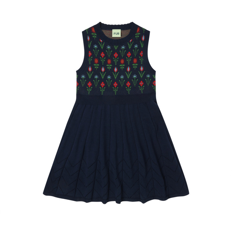 FUB KIDS Jaquard Dress dark navy/flower